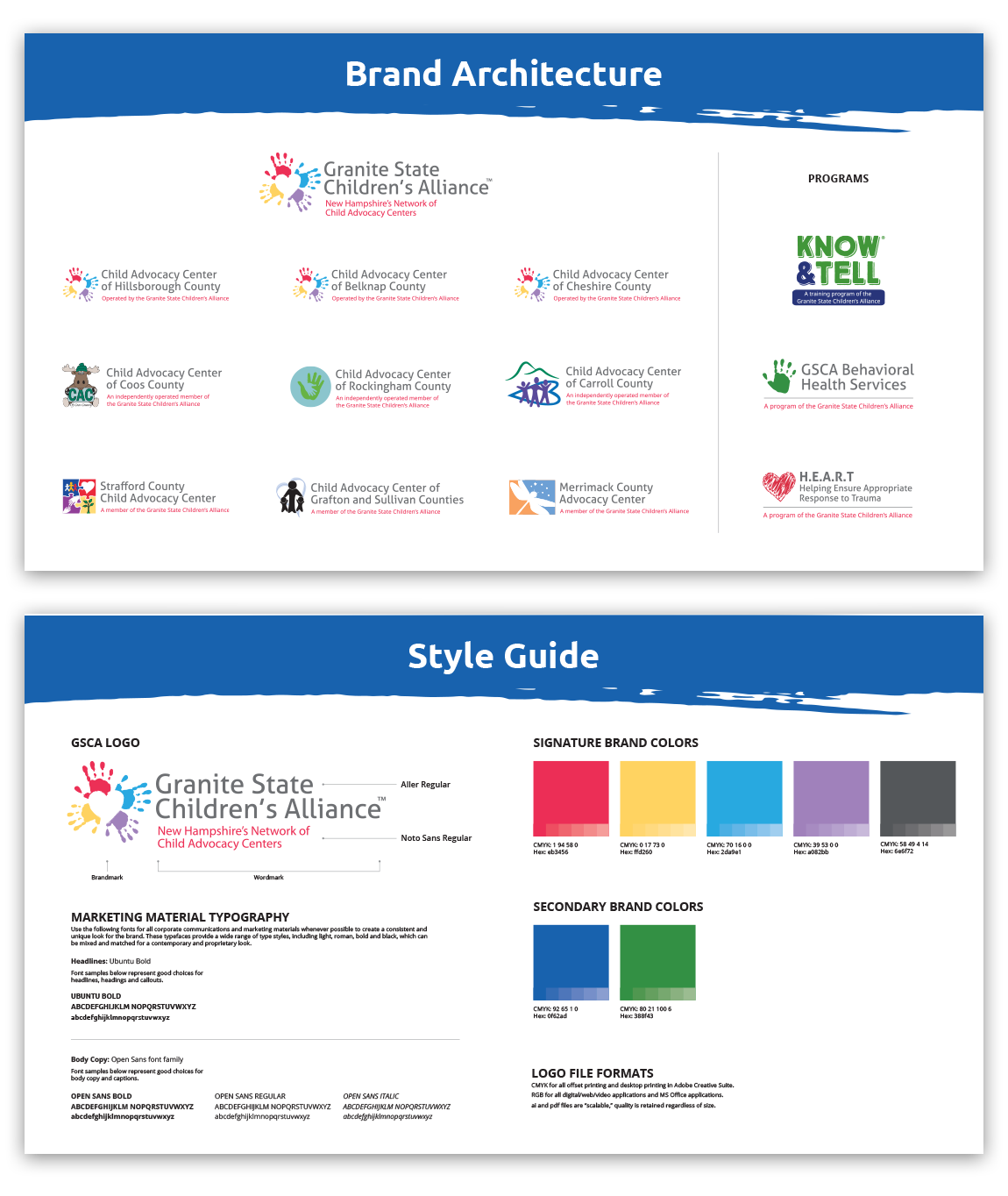 The Granite State Children’s Alliance (GSCA) is New Hampshire’s statewide network of Child Advocacy Centers (CACs), providing coordinated support for child victims of abuse and neglect. As the only agency of its kind in the state, GSCA sought to strengthen brand cohesion across nine CACs, elevate awareness of its flagship program KNOW & TELL® and more clearly communicate its mission of delivering justice, healing and hope to children and families.